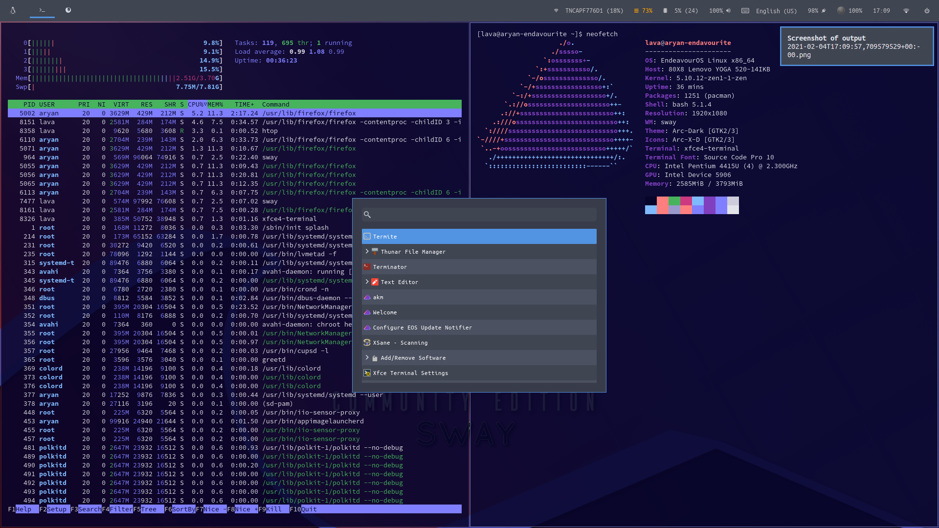- [mod]+enter = open terminal (XFCE4-Terminal and/or Termite)